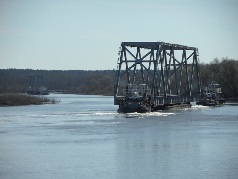 Для ажыццяўлення перавозкі ферм выкарыстоўваліся пяць буксірных цеплаходаў і дзве спецыяльна пераабсталяваныя несамаходныя баржы-пляцоўкі. Адлегласць перавозкі па водным шляху склала 122 км.